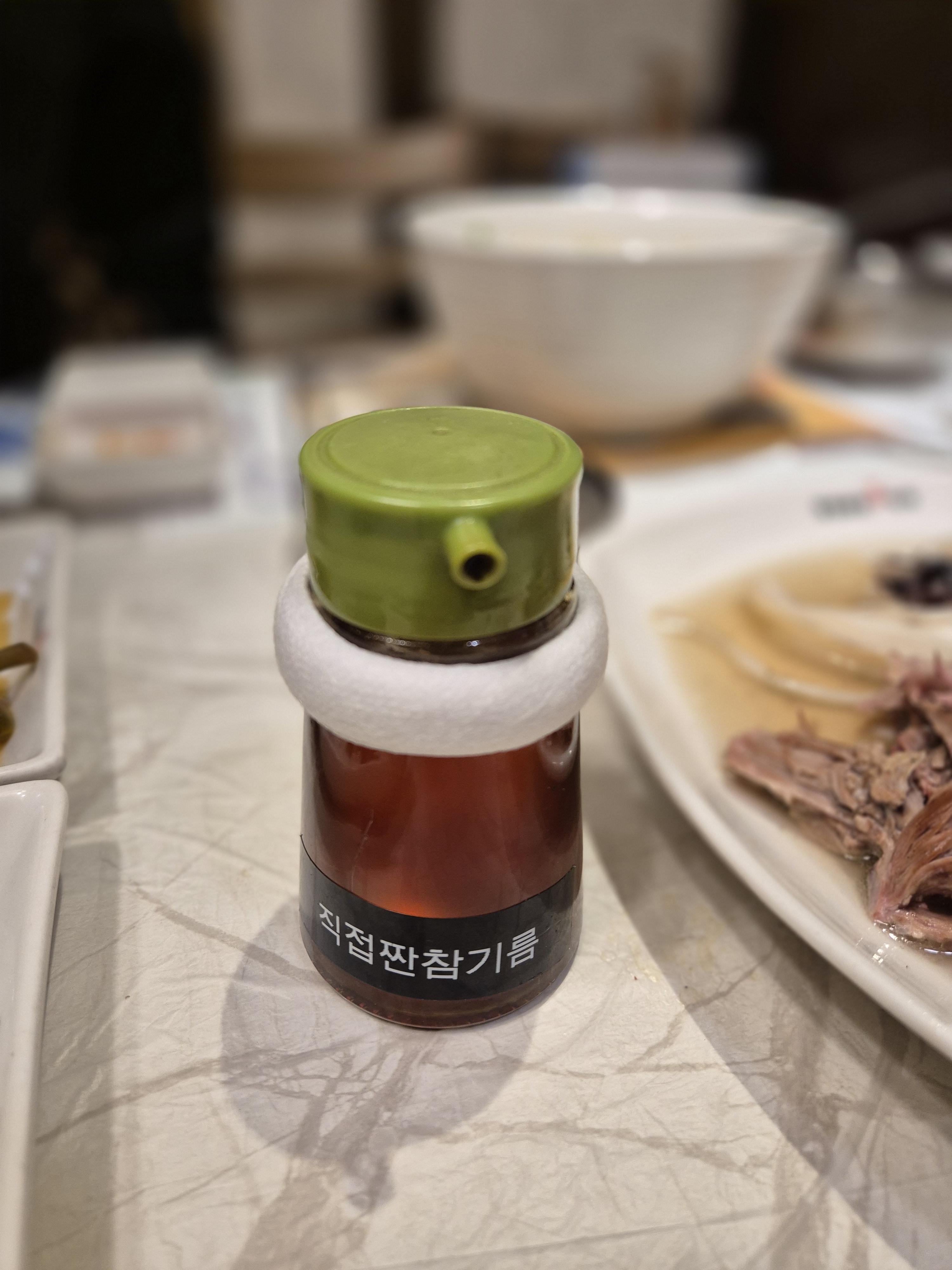 그리고 이 육회 비빔밥을 먹을 때 킥이 하나 있는데요, 직접 짠 참기름! 이 것을 두 바퀴 정도 휘휘 둘러서 드셔보세요.