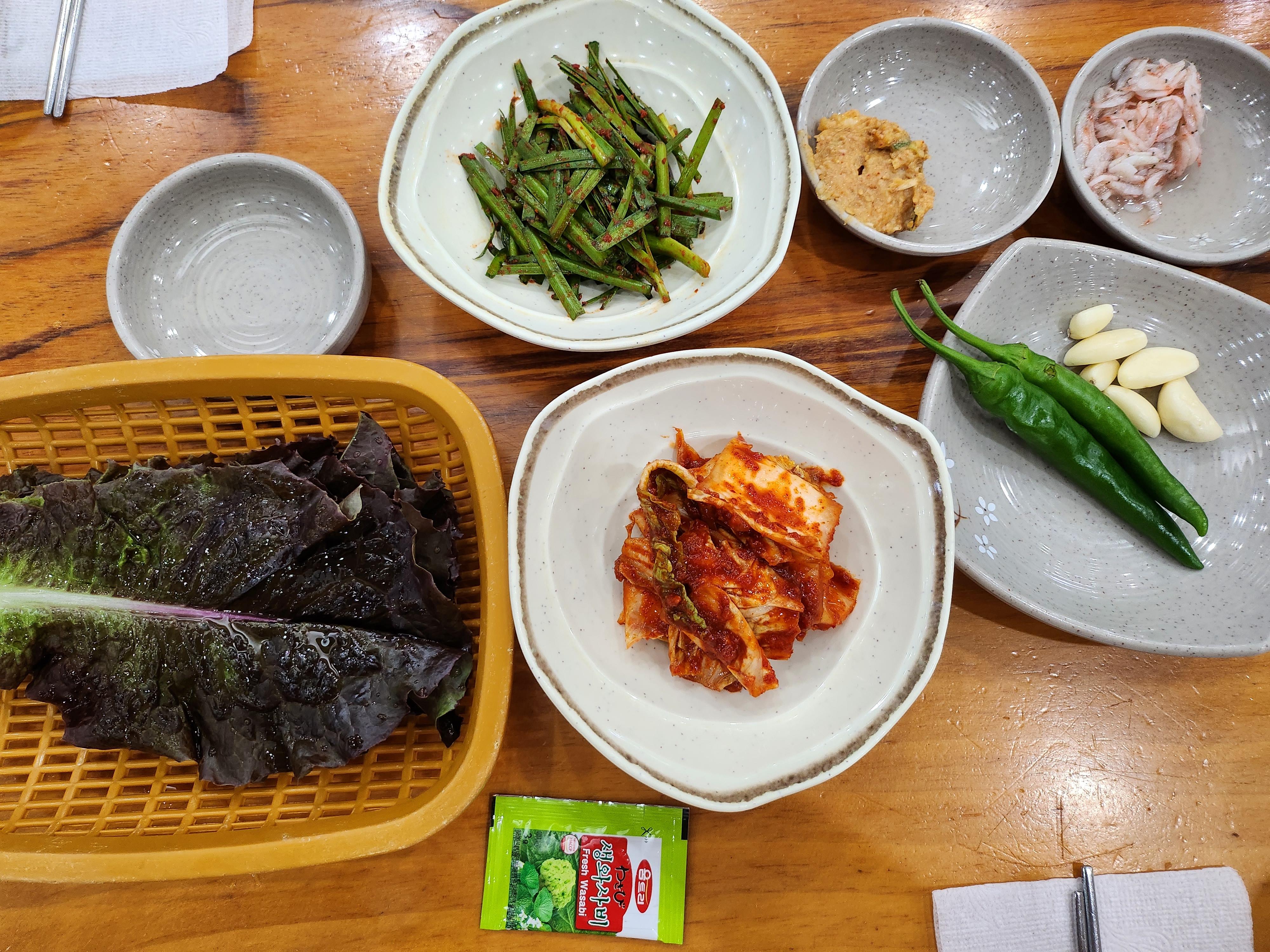깔끔한 밑반찬이 먼저 나왔고, 역시나 K 패스트 푸드 답게 음식이 진짜 빨리 나왔다.