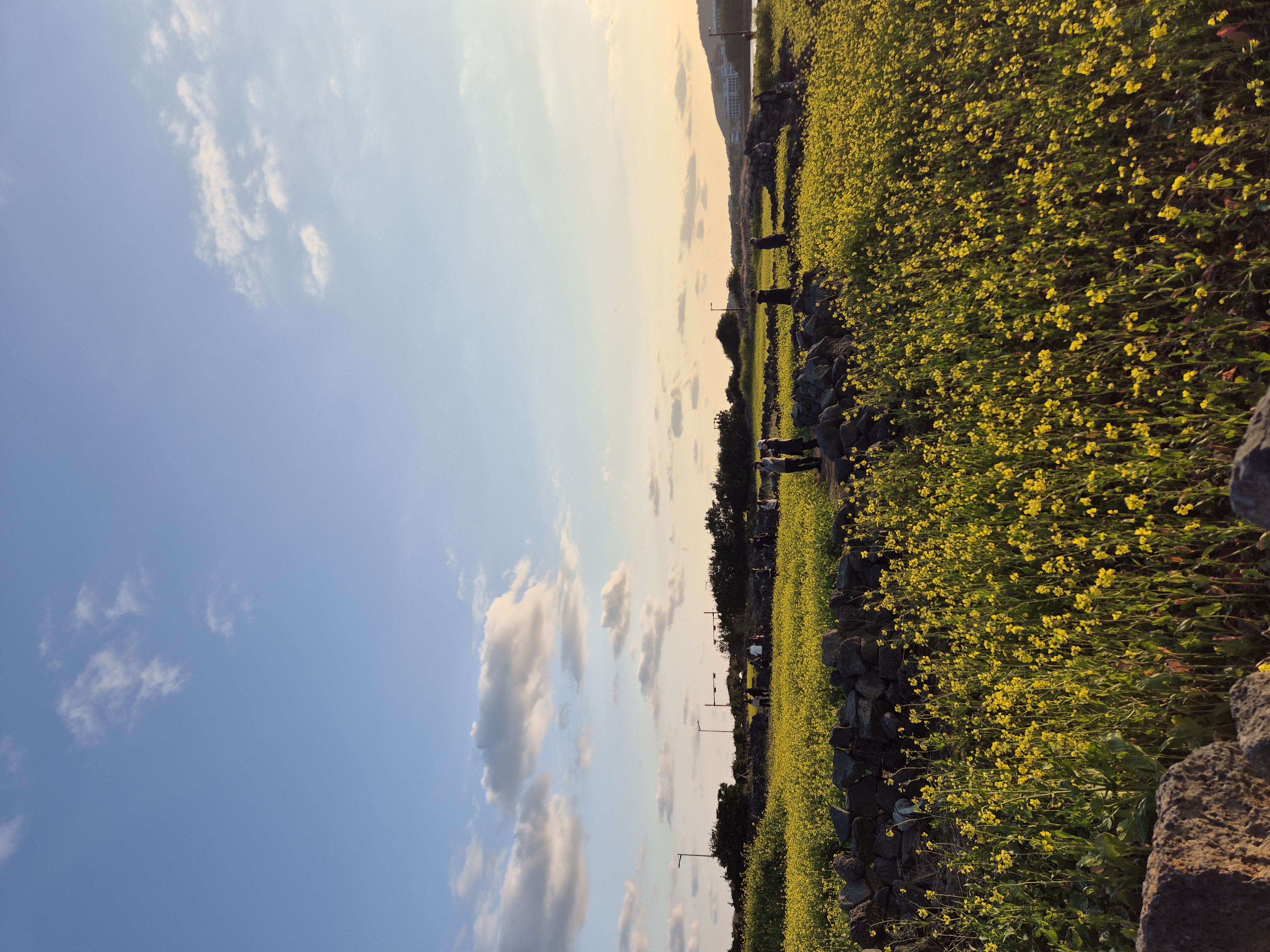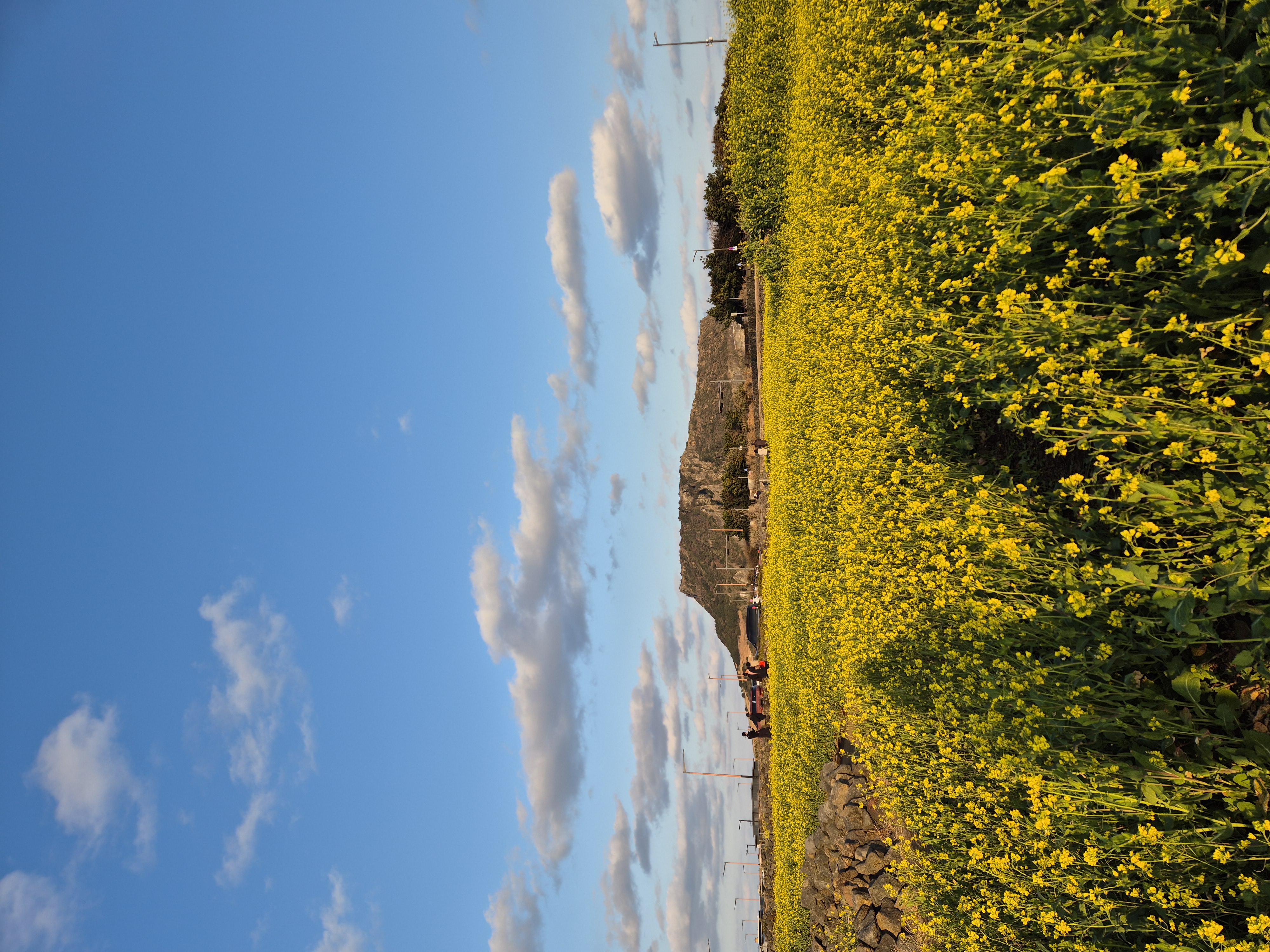 애니메이션에 나오는 것처럼 파란 하늘과 뭉게구름, 노란 유채꽃까지 아름다운 풍경과 포근한 날씨,