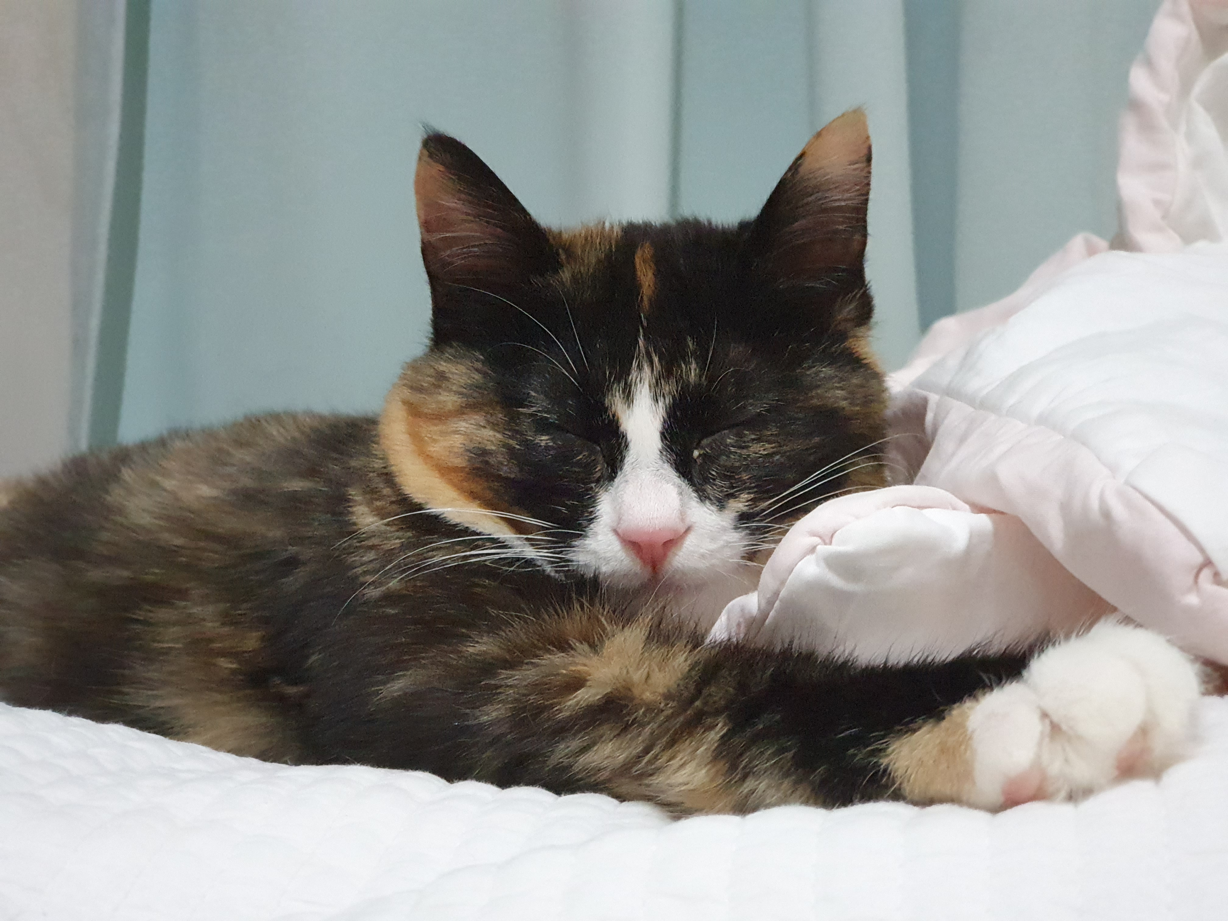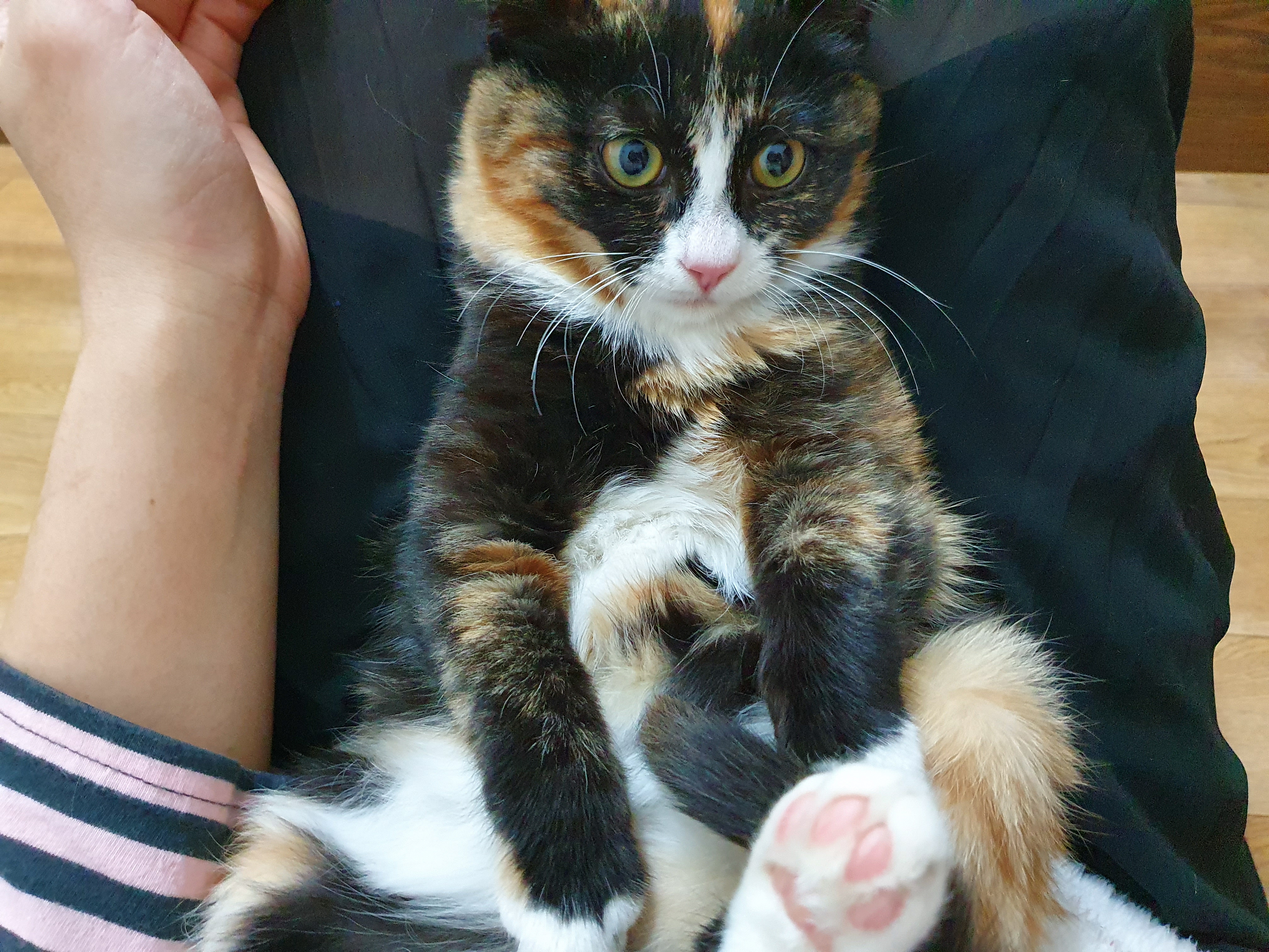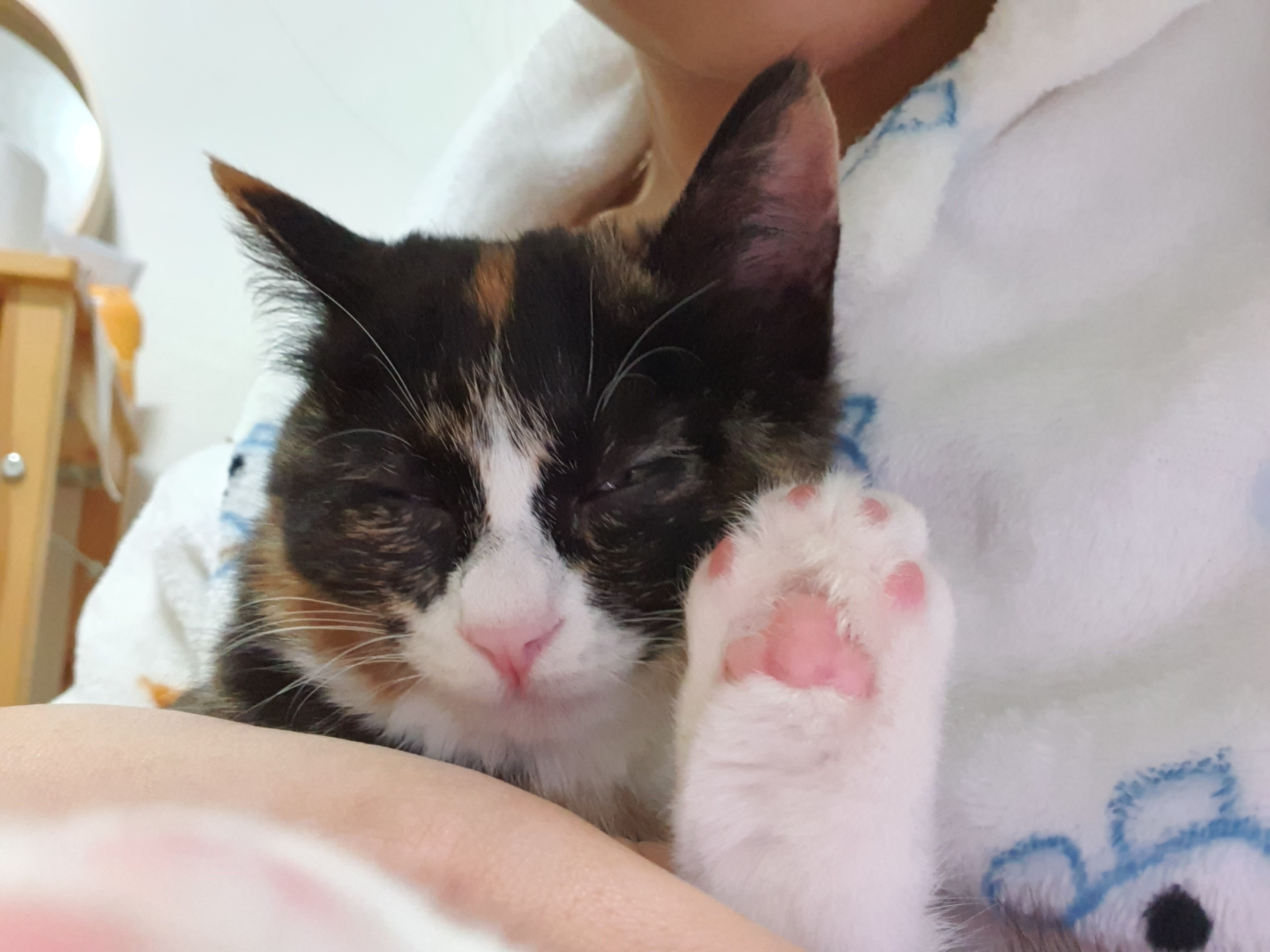 털이 긴 장모 삼색이 채린이가 태어난 듯 하다