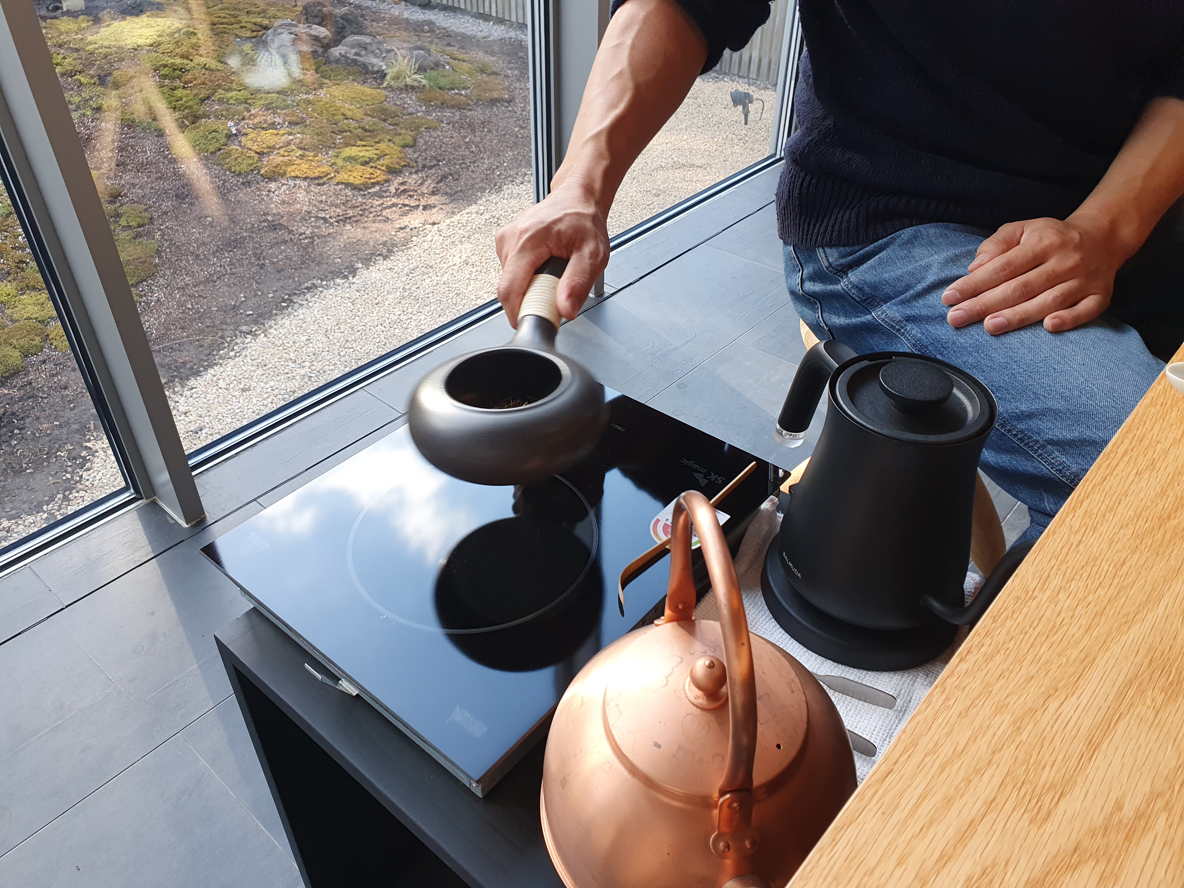 그 자리에서 직접 차를 덖는 걸