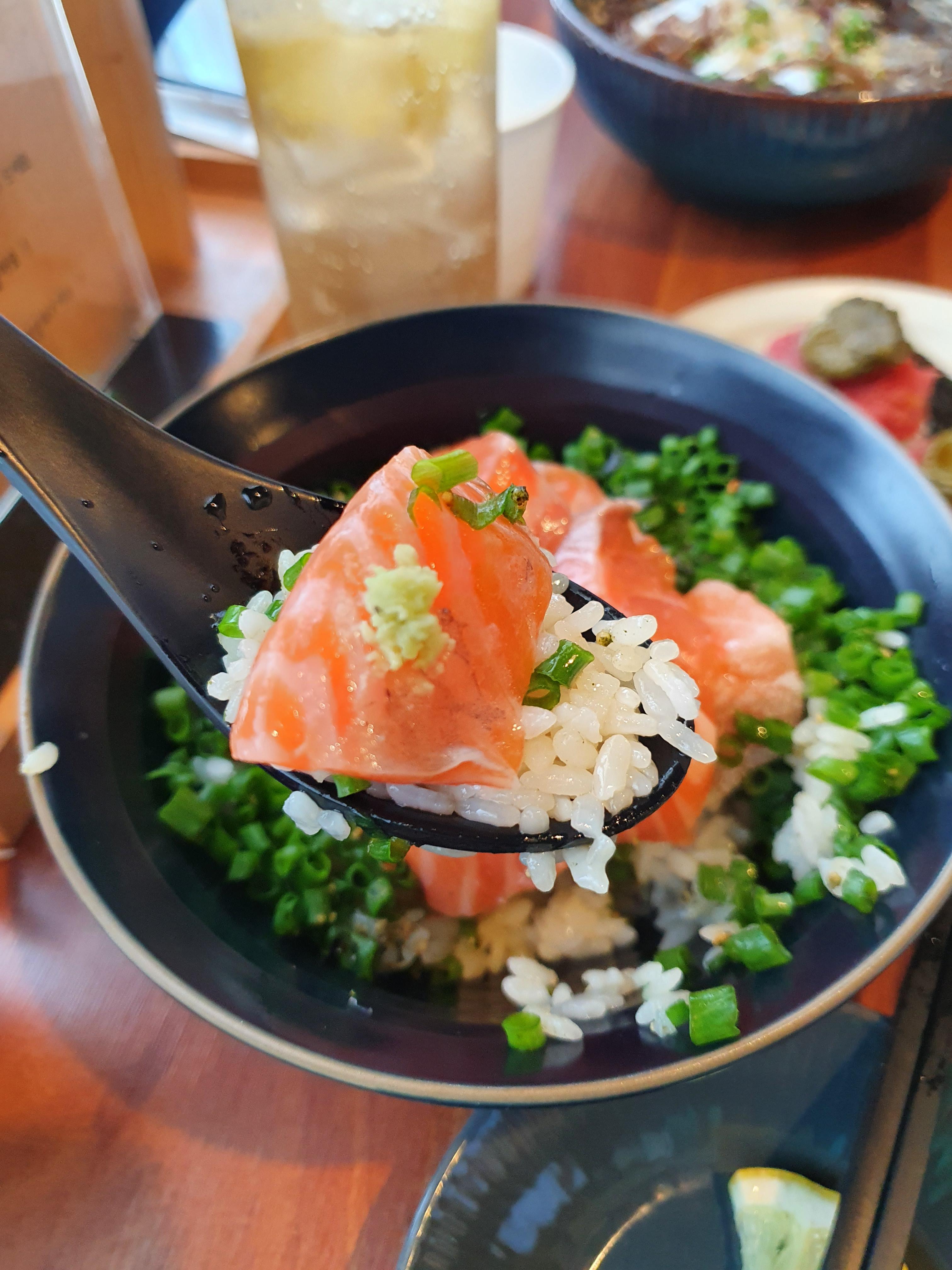 다양하게 맛보려고 연어 덮밥을 주문했지만,