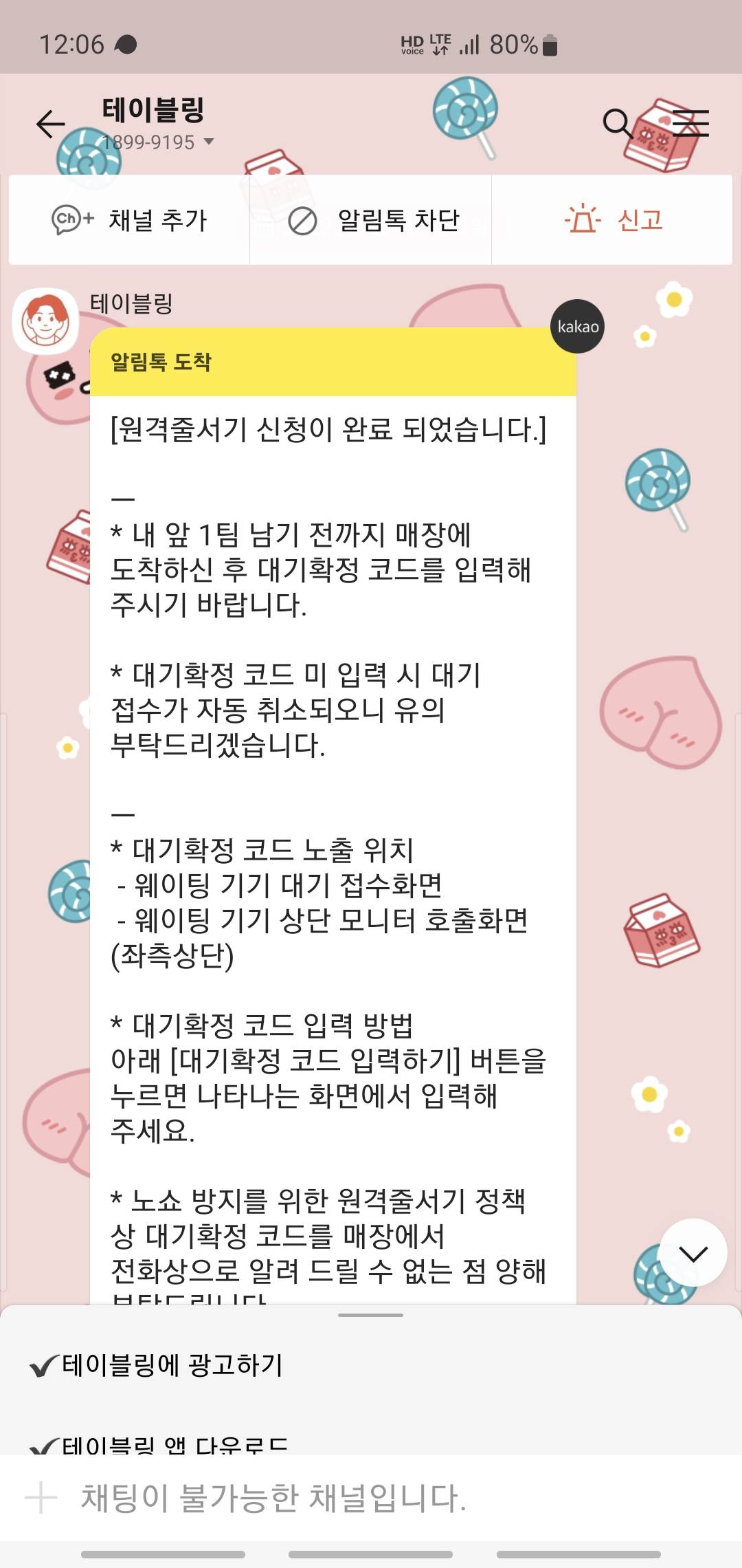 집에서 도착 30분 전에 원격줄서기를 신청했고,
