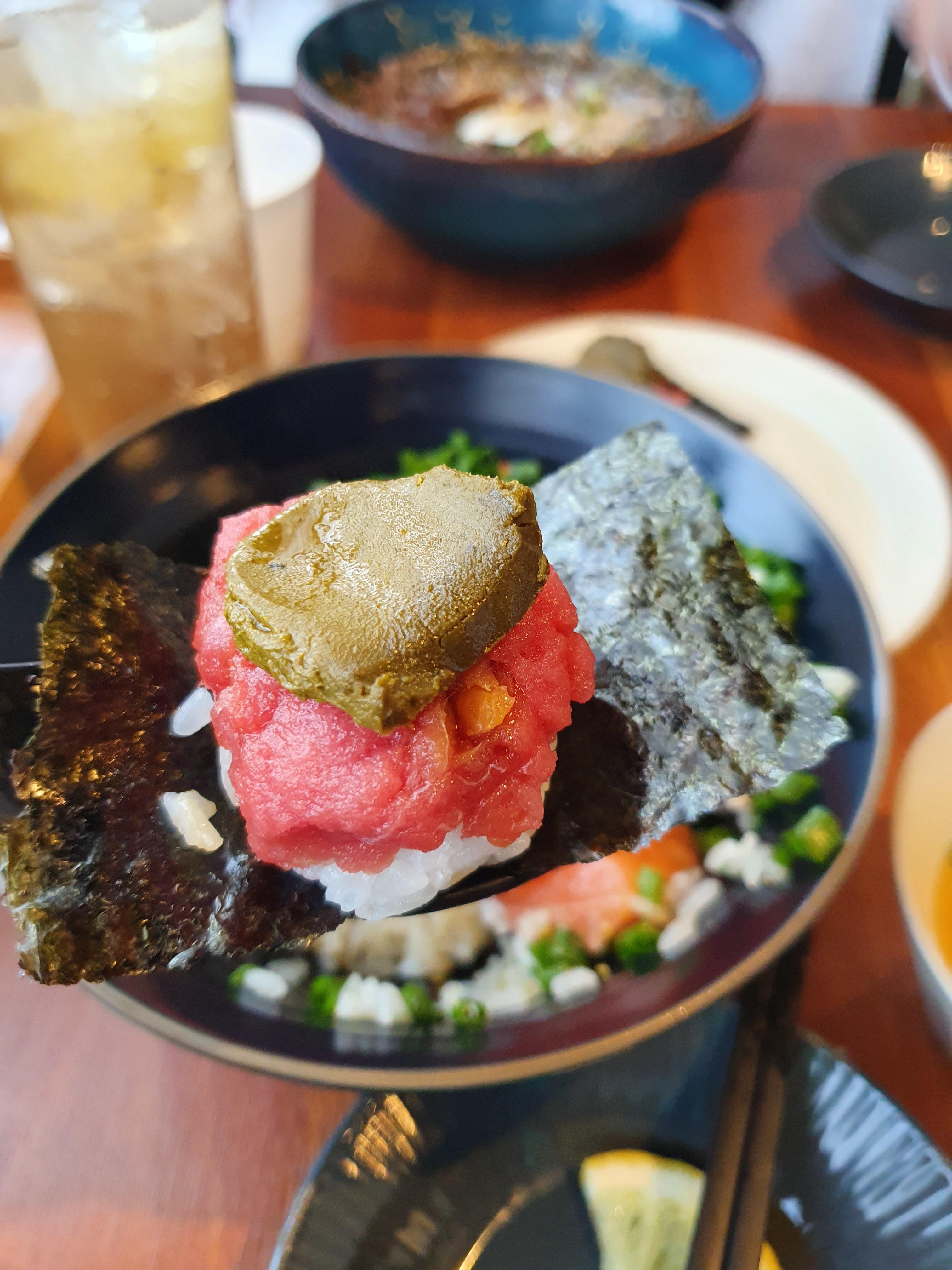-다진 참다랑어 위에 전복내장(게우)크림을 올린