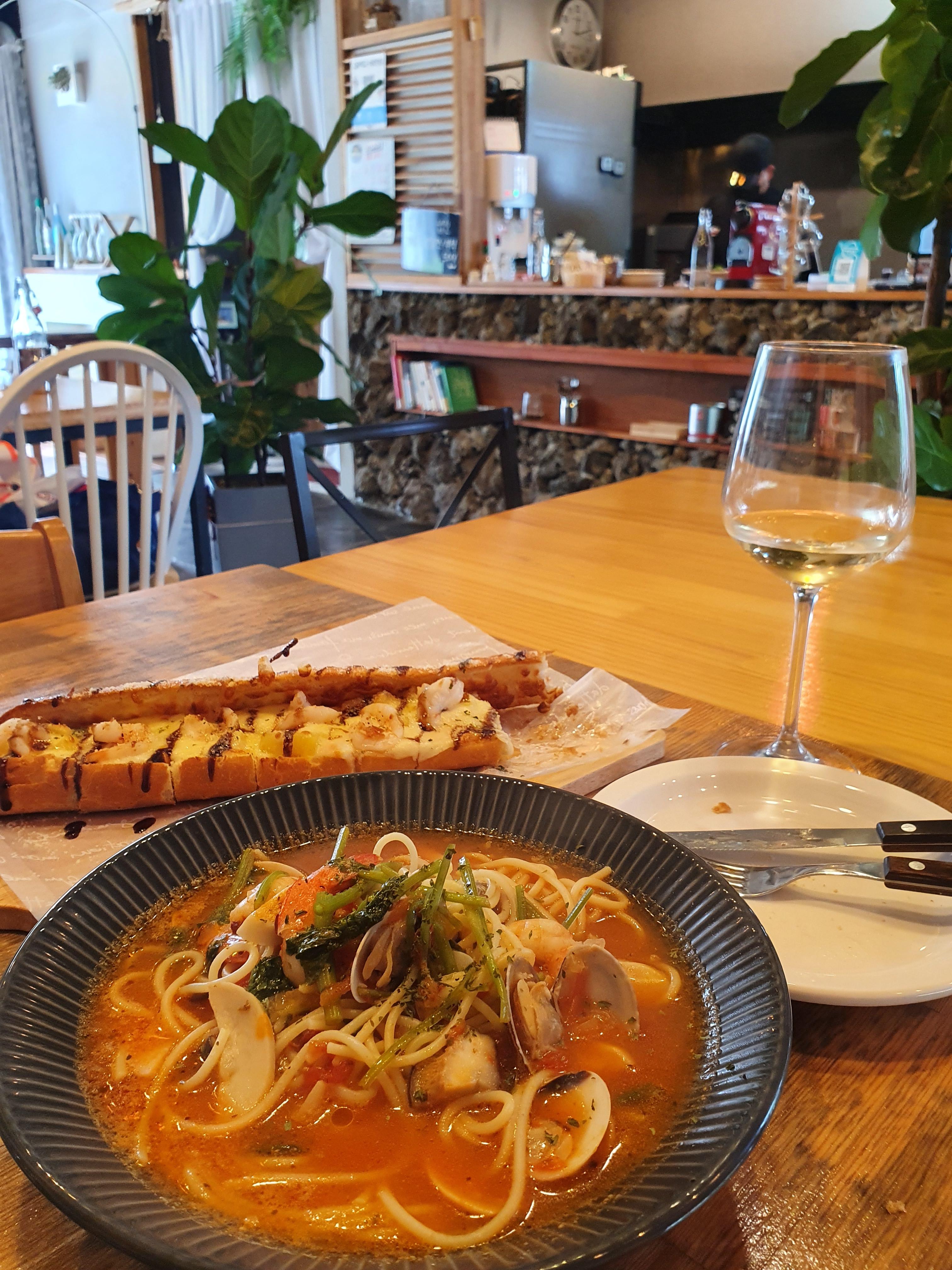 혼자 파스타와 바게트 피자를 주문했는데